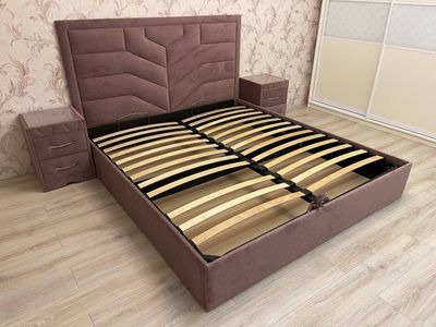 Конструкция кровати усилена металотраверсами, фурнитурой Via Ferrata, крепким дном бельевого ящика, съемным средником в металлических пазах и усиленным сквозным крепежом с пресс шайбой.