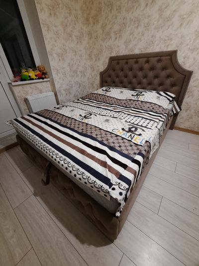 Конструкция кровати усилена металотраверсами, фурнитурой Via Ferrata, крепким дном бельевого ящика, съемным средником в металлических пазах и усиленным сквозным крепежом с пресс шайбой.