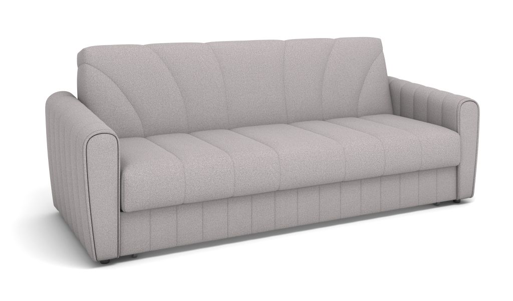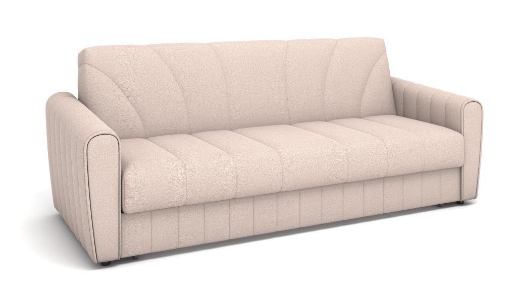 Плавная геометрия декоративной стежки придает дивану легкость и защищает ткань от растяжения. Декоративный кант на подлокотниках в основной ткани.