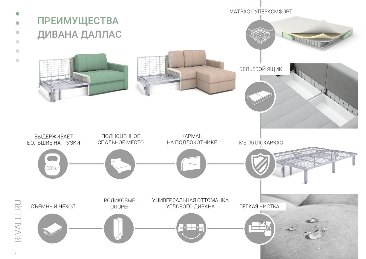 Стильный и лаконичный диван Даллас - новинка 2022 фабрики Rivalli. В дизайне модели используется вертикальная стежка, которая создает незабываемый образ, а особой "фишкой" является наличие функциональных карманов в подлокотниках на молнии.