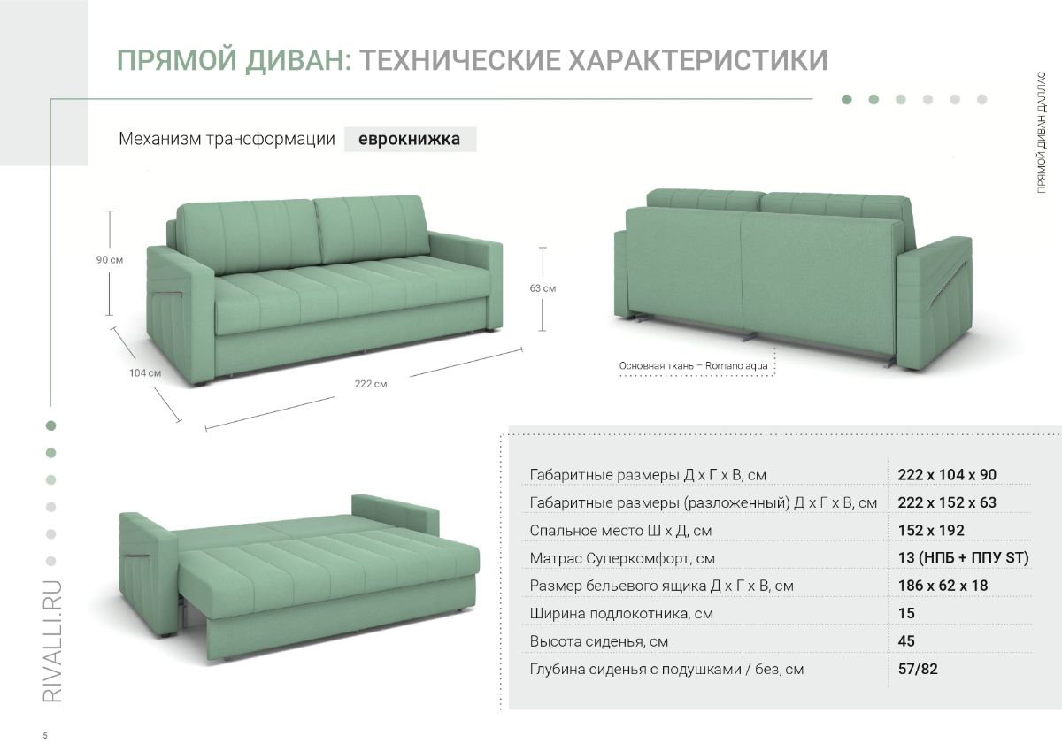 В основе дивана металлокаркас, который гарантирует долгий срок службы, неизменность геометрии дивана и отсутствие скрипов и неровностей. Механизм трансформации - еврокнижка - один из самых надежных и простых, обеспечивает легкость раскладывания, а матрас на основе блока независимых пружин дарит комфортный сон.