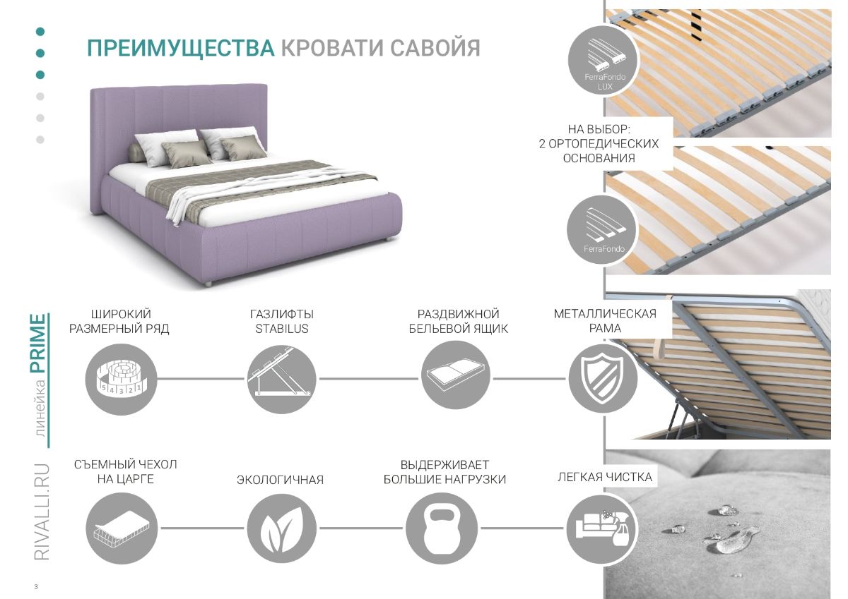 Универсальная кровать «Савойя» органично вписывается абсолютно в любой интерьер. Не только современное поколение по достоинству оценит привлекательную форму модели, прочность основания, практичность съемных чехлов и функциональность вместительного подкроватного пространства.