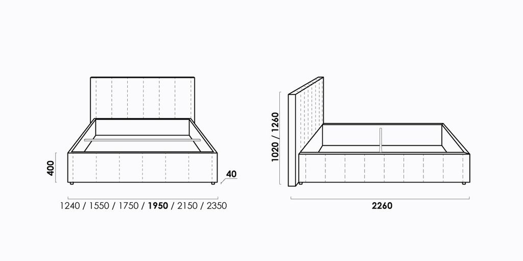 Высота спинки для кровати размера 124х226 составляет 102 см.