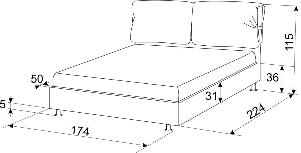 Высота изголовья 115 см;