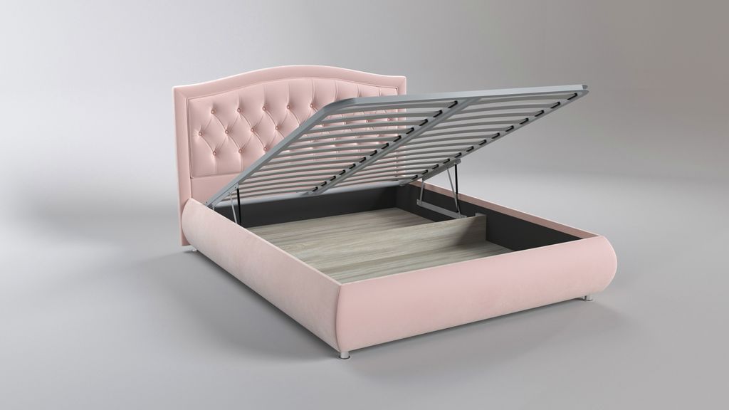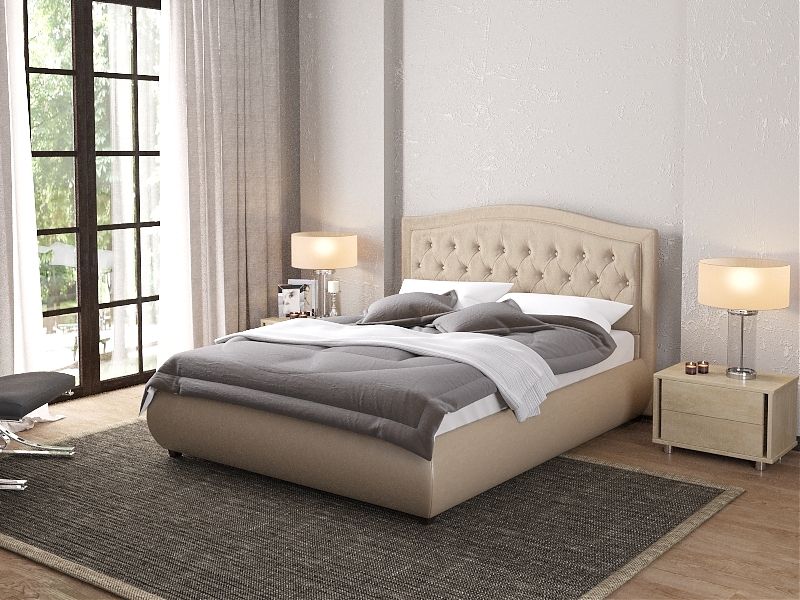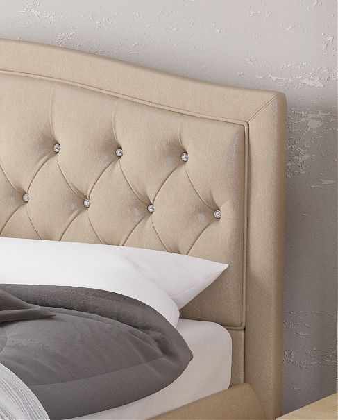 "Миледи" - кровать с мягким изголовьем, изящным изгибом в форме волны и роскошным декором. Может быть выполнена в стразах или пуговицах в тон основоного материала.