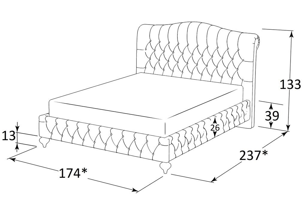 Высота изголовья 133 см;