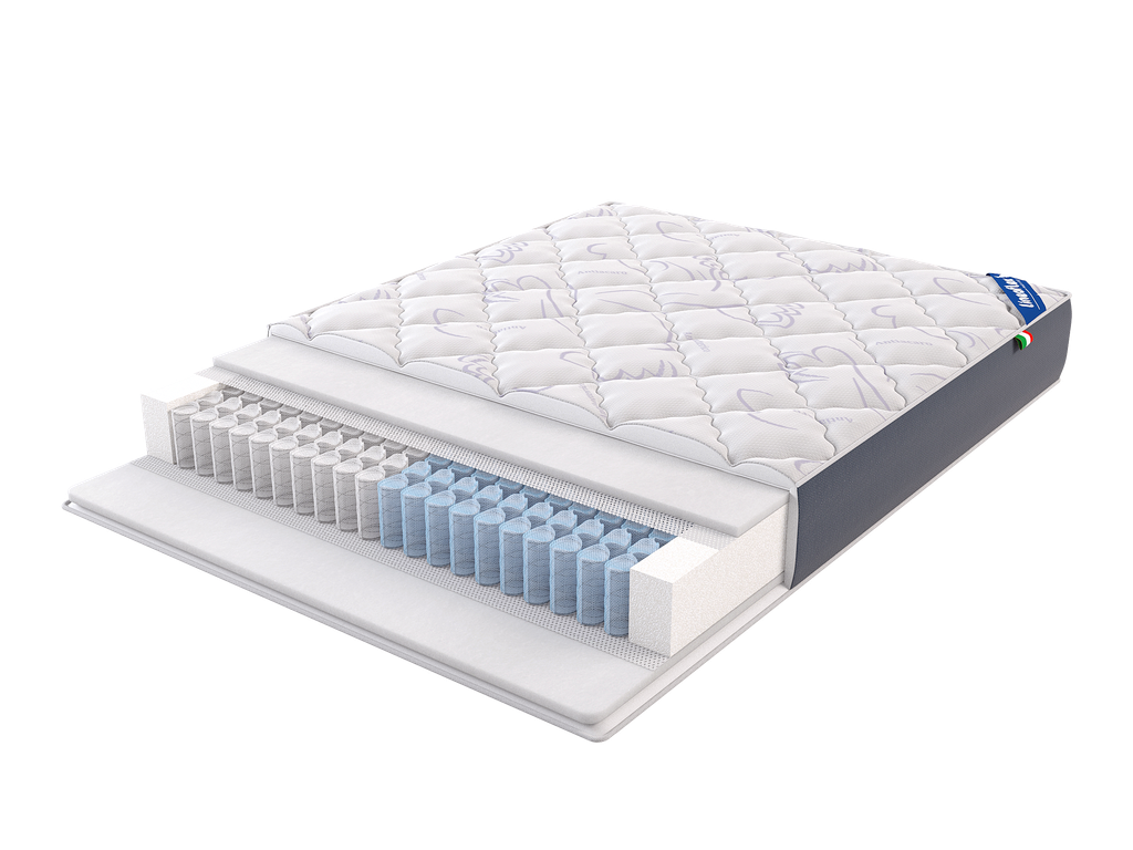 Соединив воедино слои наполнения из высокоэластичного ERGOLEX с системой комфорта ANTIBATTERICO DUO comfort, специалистам компании удалось создать модель матраса с высокими анатомическими свойствами.