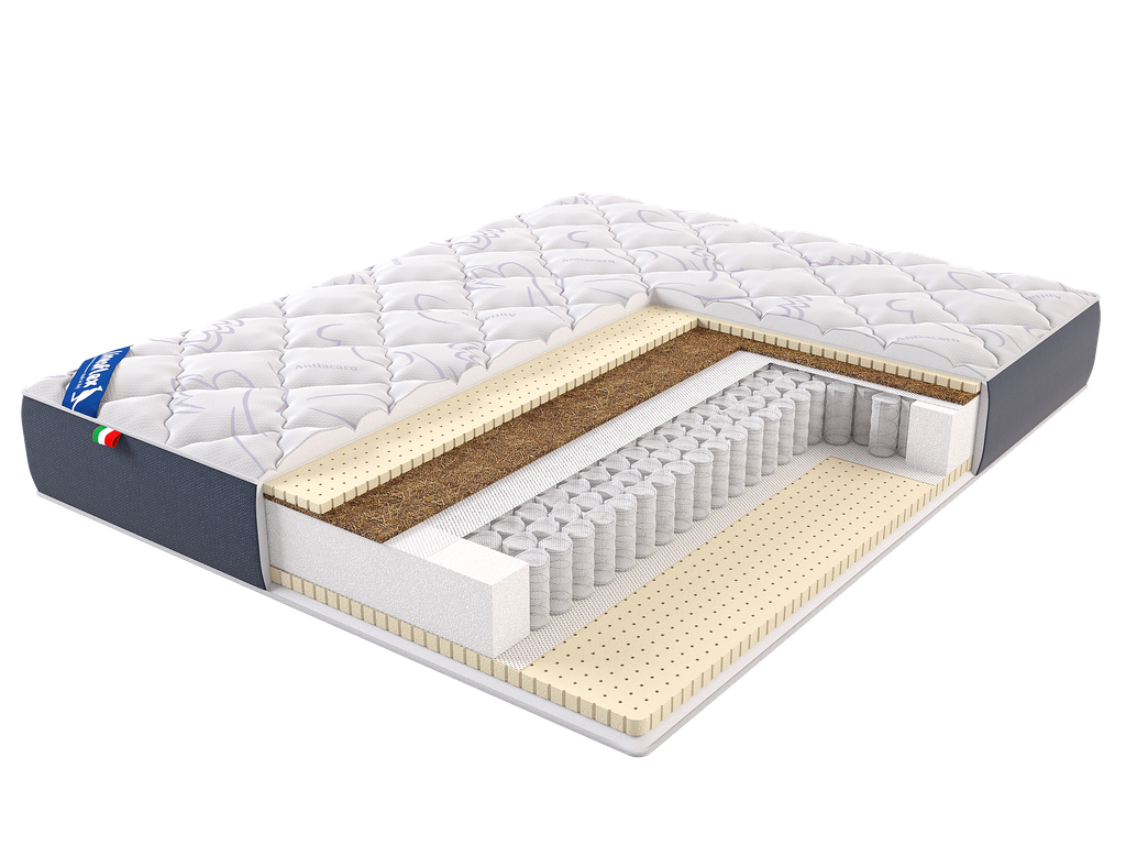 Соединив воедино слои наполнения из бельгийского ЛАТЕКСА и высокоэластичного ERGOLEX с системой комфорта ANTIBATTERICO DUO comfort, специалистам компании Mycloud удалось создать модель матраса с высокими анатомическими свойствами и повышенным сроком эксплуатации.