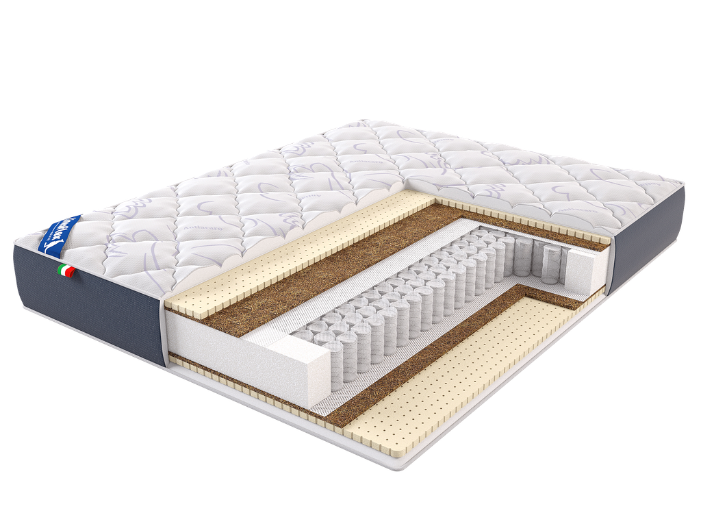 Соединив воедино слои наполнения из высокоэластичного ERGOLEX с системой комфорта ANTIBATTERICO DUO comfort, специалистам компании Lineaflex удалось создать модель матраса с высокими анатомическими свойствами и повышенным сроком эксплуатации.