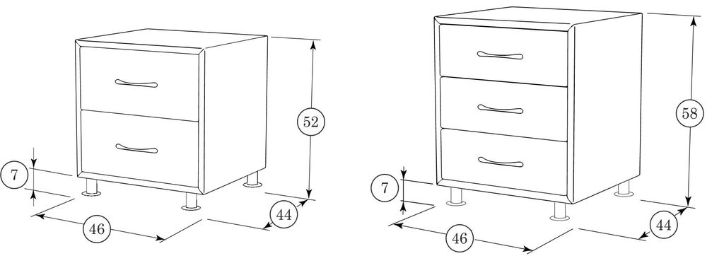 Ширина тумбы - 44 см;